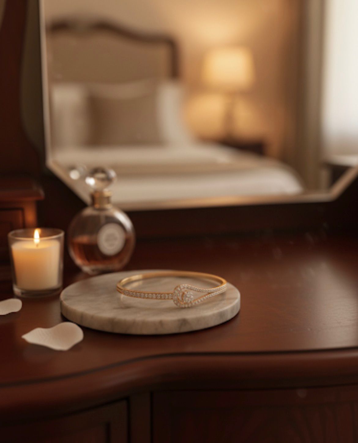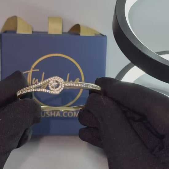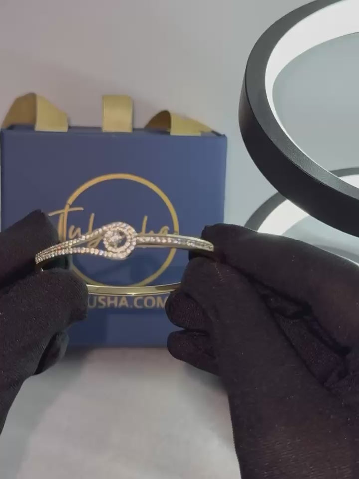 18 Carat Gold Plated Anti Tarnish Pave Bypass Solitaire Bangle