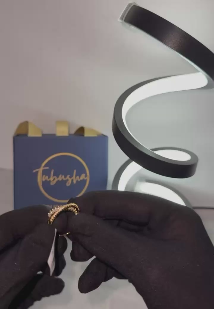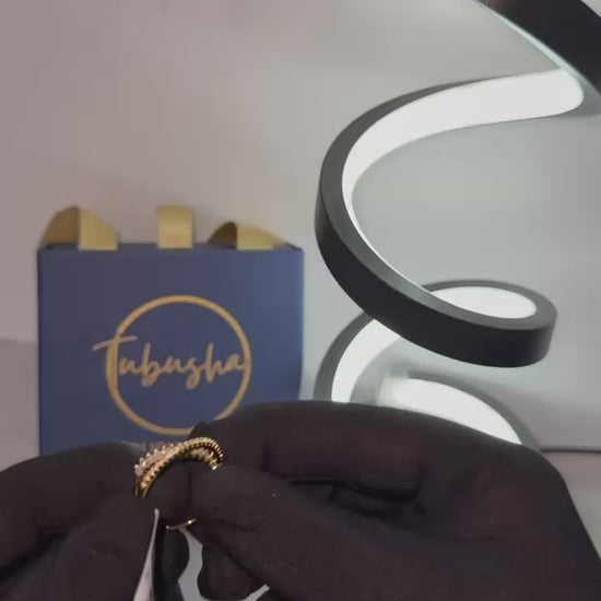 18K Gold Plated Baguette & Pave Double-Row Adjustable Cuff Ring