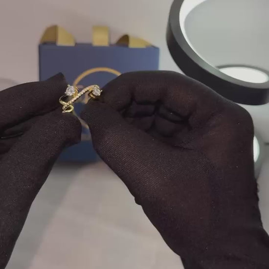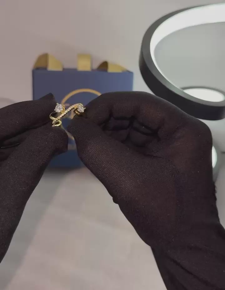 18K Gold Plated Dual Crystal Crossover Adjustable Ring