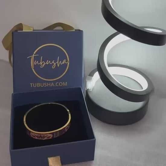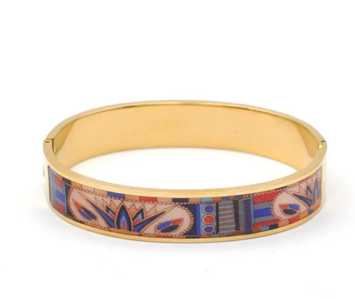 18K Gold-Plated Enamel Patterned Bangle Anti-Tarnish Finish