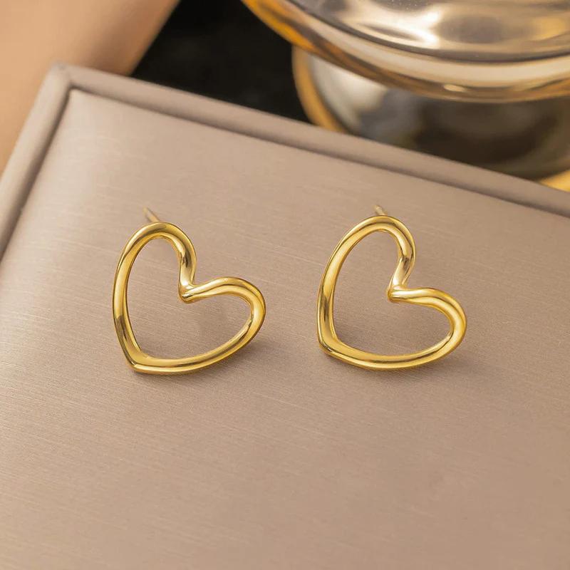 (COMBO) Minimalist Open Heart Necklace + Earring Set