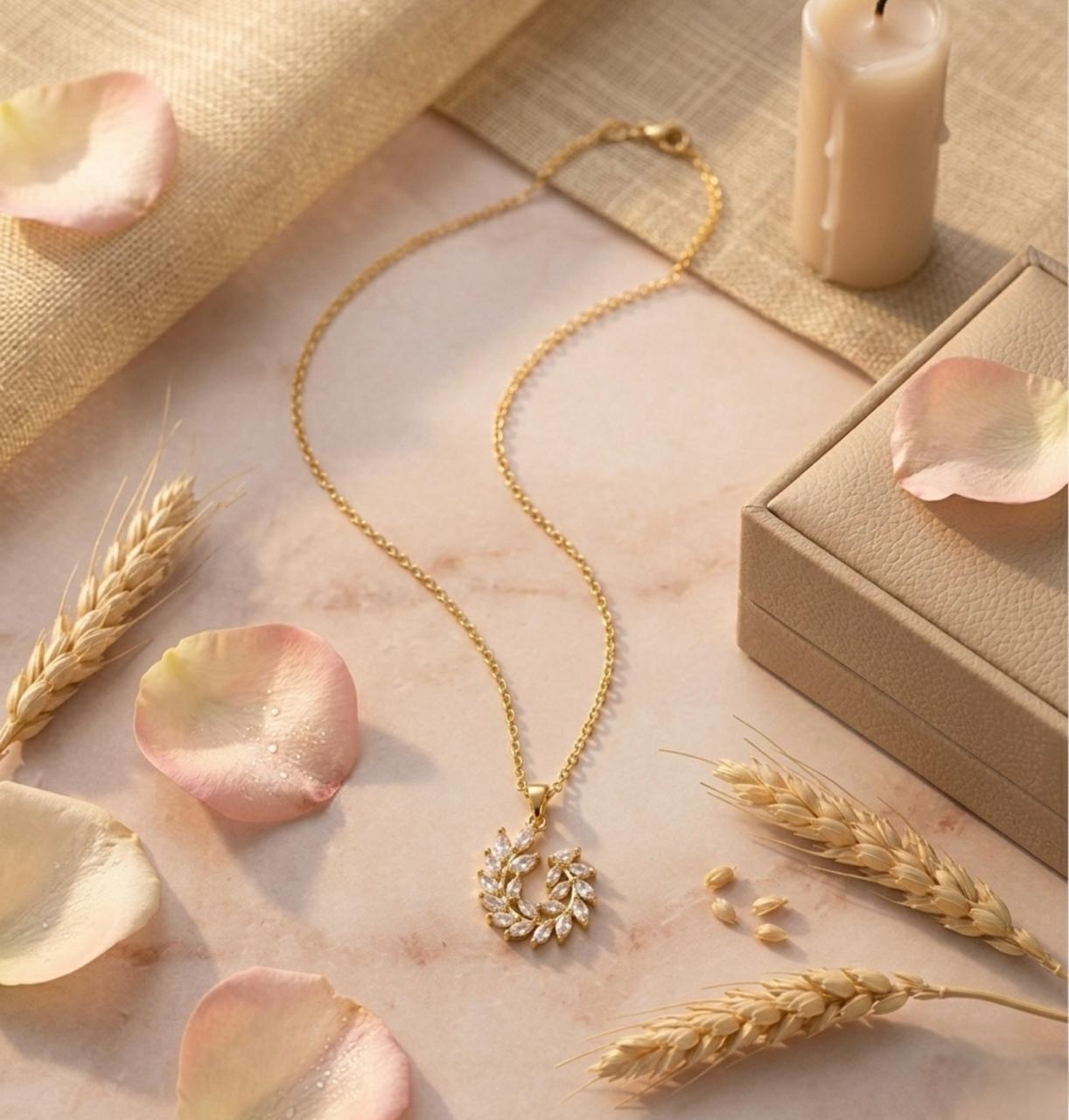 Gold-Plated Anti Tarnish Stainless Steel Crystal Leaf Bloom Pendant