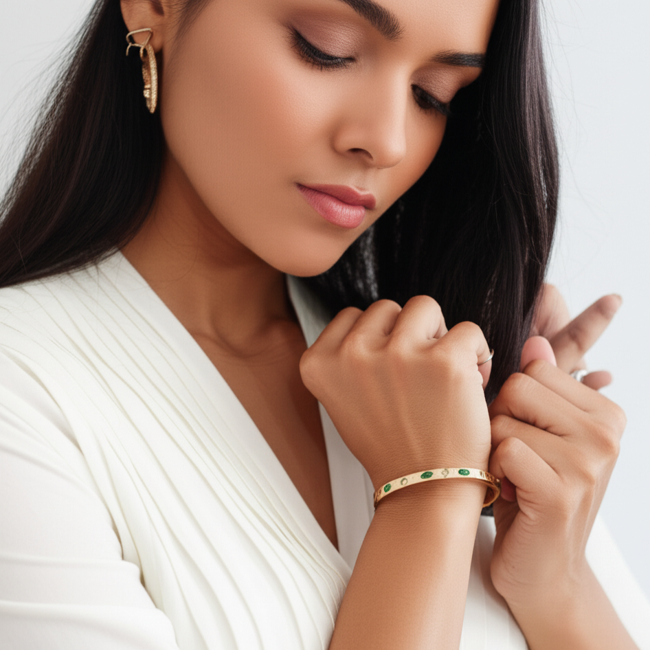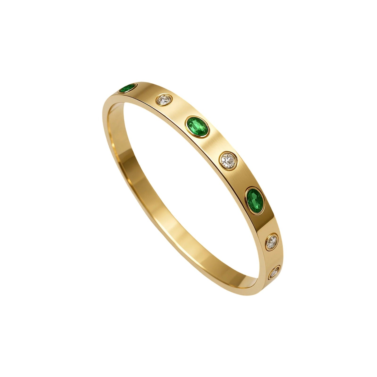 "Emerald Gleam" 18K Gold-Plated Crystal Bangle Bracelet