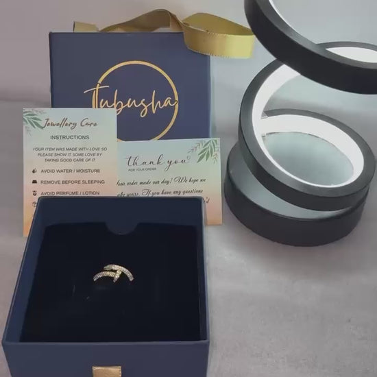 18K Gold Plated Anti-Tarnish Stainless Steel Nail Shaped AD Studded Adjustable Finger Ring