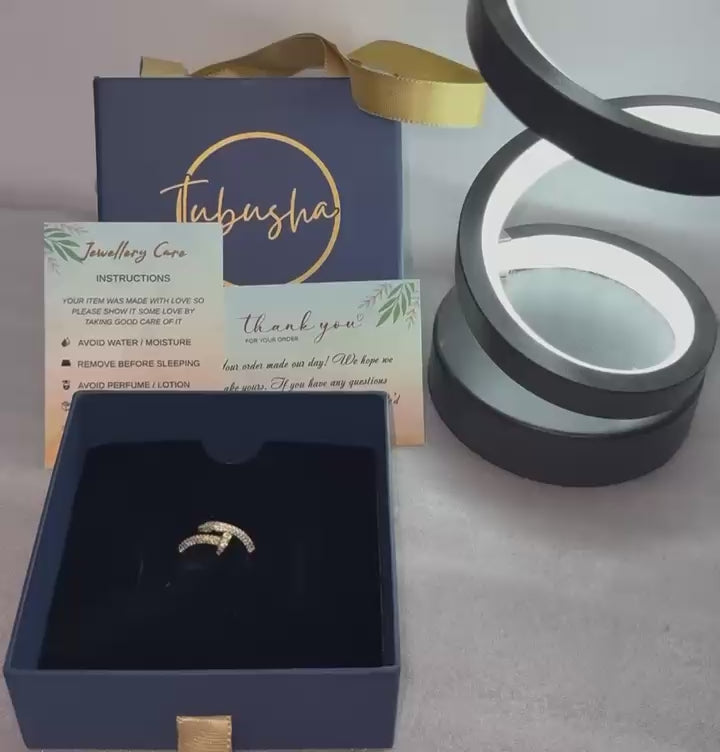 Samreen "Stylish and unique! The nail-shaped design is very modern, The AD stones add the perfect sparkle, and the adjustable fit makes it super comfortable. Feels premium and is definitely an eye-catching piece!"