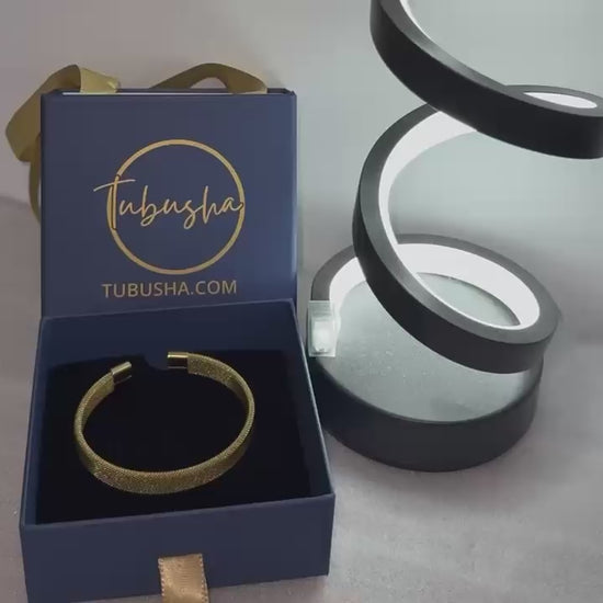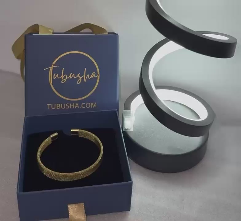 18K Gold Plated Stainless Steel Anti Tarnish Mesh Statement Cuff Bracelet