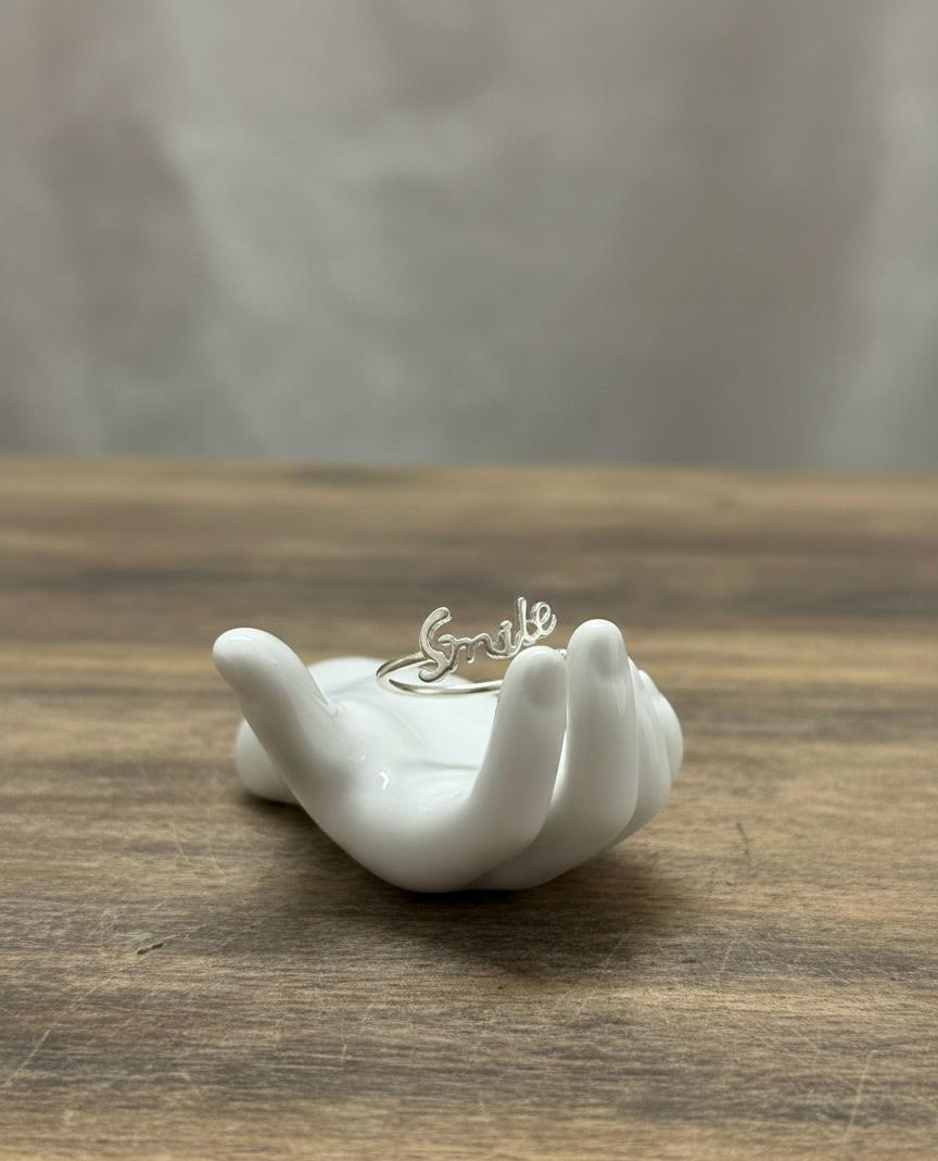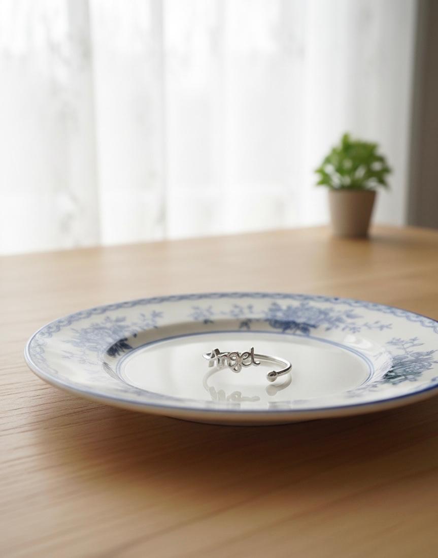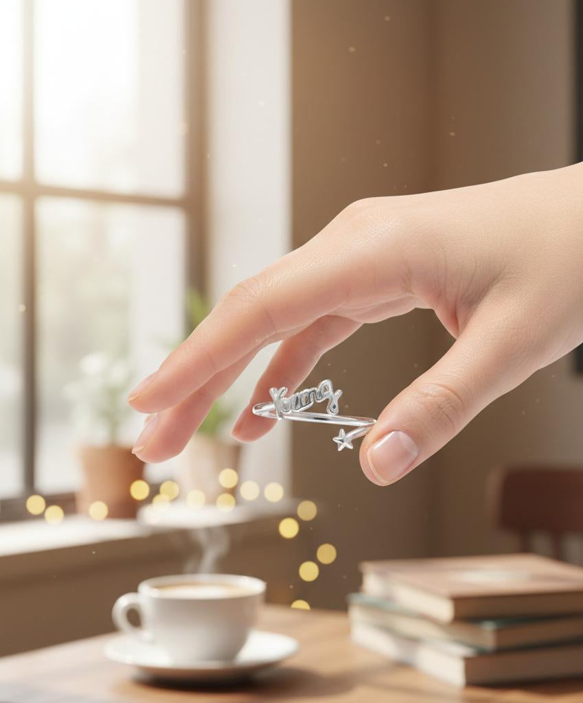 - Elegant ring featuring a graceful script design