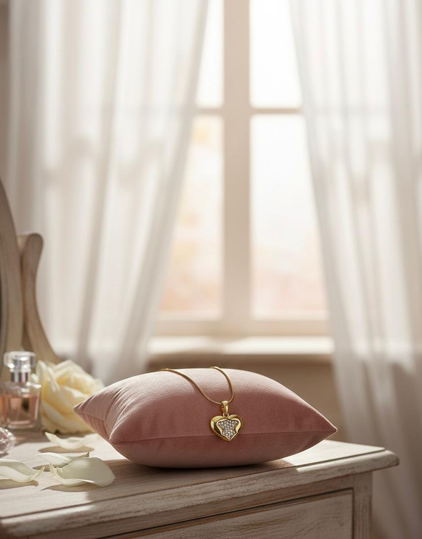 - Elegant heart-shaped pendant with sparkling crystal detailing