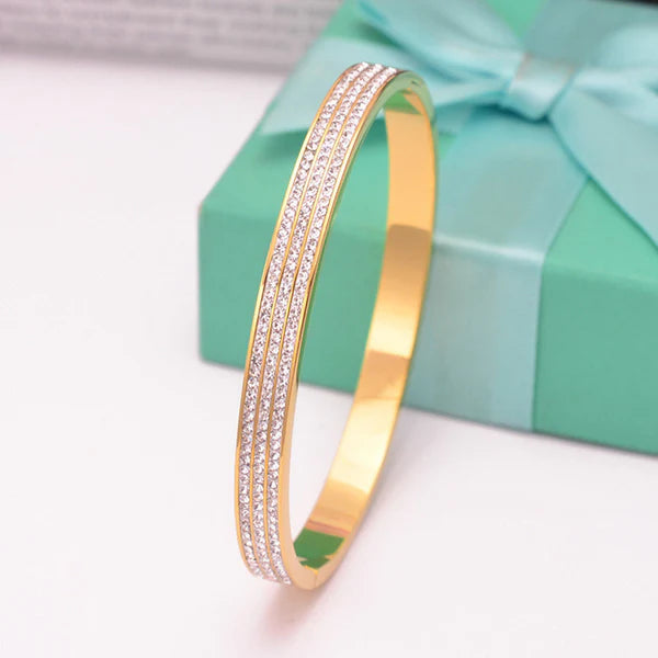 Stainless Steel Gold Plated Triple Lines American Diamond Contemporary Anti-Tarnish Bracelet For Women