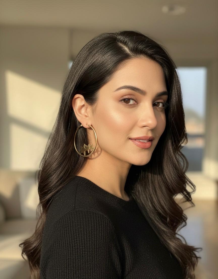 - Cool hoop earrings with three cute stars inside the circle.
